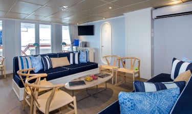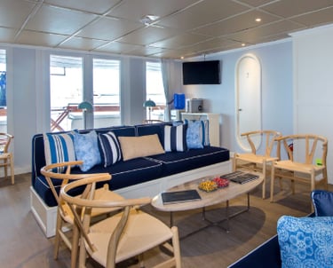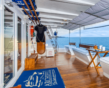 Archipel feels like a modern field studio at sea—clean lines, generous deck space. Ashore, small groups and story-driven guiding bring you eye-level with the islands’ rhythms: marine iguanas warming on basalt, sea lions threading green bays, and seabirds surfing invisible thermals. Back on board, the atmosphere is calm and precise, so you can refuel, compare sightings, and watch the horizon fall into constellations.