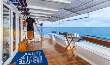 Life aboard Archipel blends small-ship ease with design clarity: sunrise coffee and a concise plan from your Galapagos naturalist, active windows for snorkeling, kayaking, or Zodiac cruising, and quiet interludes on open sun decks or in the panoramic lounge. Evenings lean local—chef-inspired plates, relaxed conversations, and star-bright skies, an inviting floating base for Galapagos discovery.