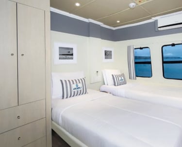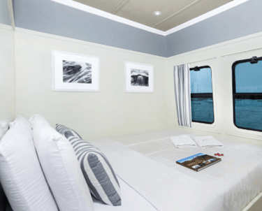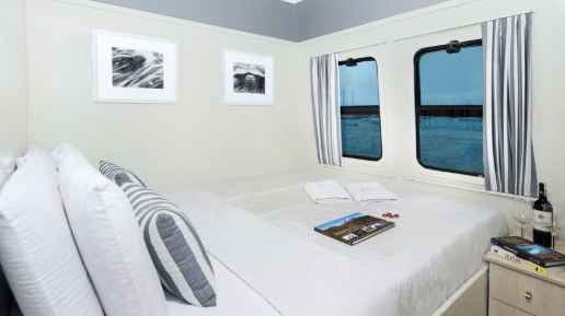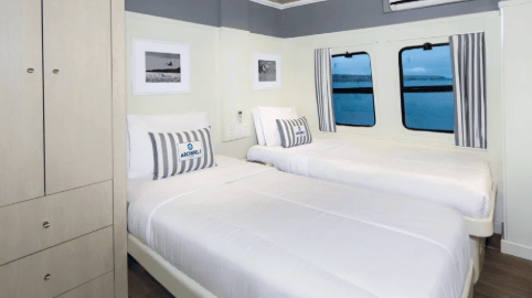 Ocean-view cabins: are set along the catamaran’s beam to maximize stability and views, with convertible bedding