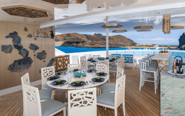 Think of Elite as your private, floating pied-à-terre in the Galapagos, sleek, light-filled, and purpose-built for close wildlife time. With just 16 guests and a calm twin-hull ride, days feel unrushed: quick Zodiac access, tiny groups on shore, and balcony-morning coffees with lava vistas right outside your suite. Inside, the look is modern-nautical—panoramic windows, airy lounges, and a sky deck made for golden-hour watching. Add chef-driven Ecuadorian coastal cuisine, thoughtful crew touches, and you have got a small-ship Galapagos luxury cruise that is intimate, design-forward, and delightfully easy.
