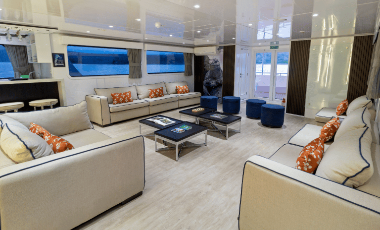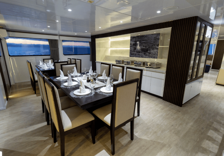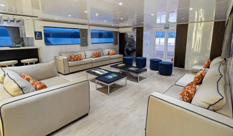 Board Galaxy Yacht, a stylish Galapagos small-ship designed for travelers who want breathing room and real connection, ocean-view cabins, flowing deck spaces, naturalist-guided excursions, and wildlife-rich itineraries paced for clarity and wonder.