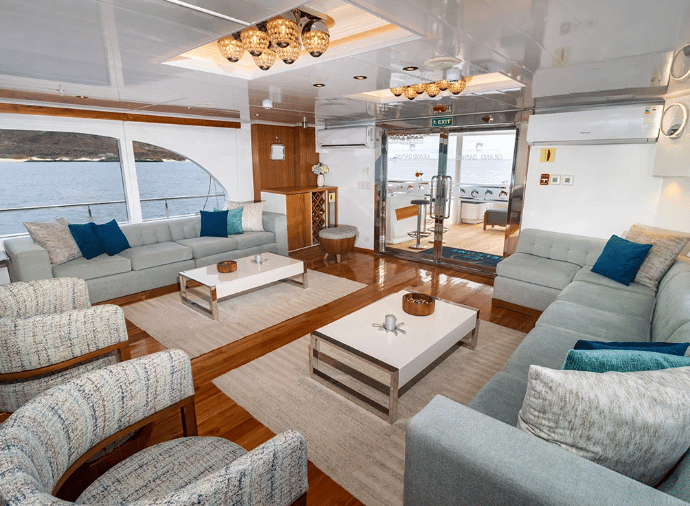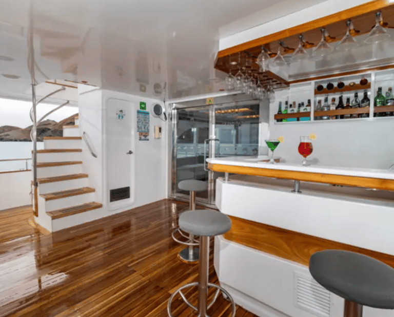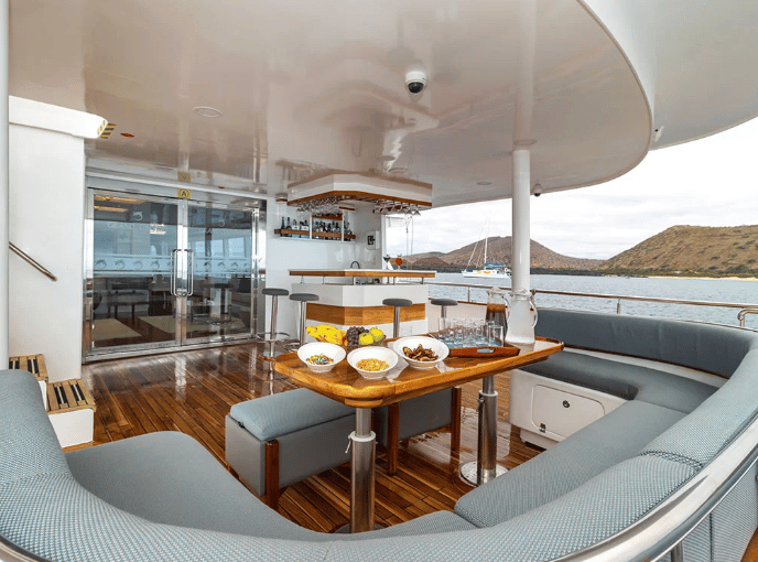 Life aboard Gran Daphne blends small-ship ease with crisp operations: sunrise coffee and a clear plan from your Galapagos naturalist, active windows for snorkeling, kayaking, or Zodiac cruising, then quiet interludes on open sun decks or in the ocean-view lounge.
