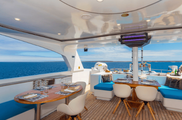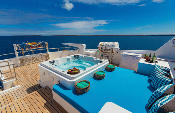 Life aboard Grand Majestic blends modern yacht design with small-ship ease: sunrise coffee and a clear plan from your Galapagos naturalist, active windows for snorkeling, kayaking, or Zodiac cruising, and quiet interludes in ocean-view lounges or on the open bow. Evenings lean refined with chef-crafted plates with local notes, relaxed conversation, and star-bright skies—making Grand Majestic an inviting floating base for Galapagos discovery.