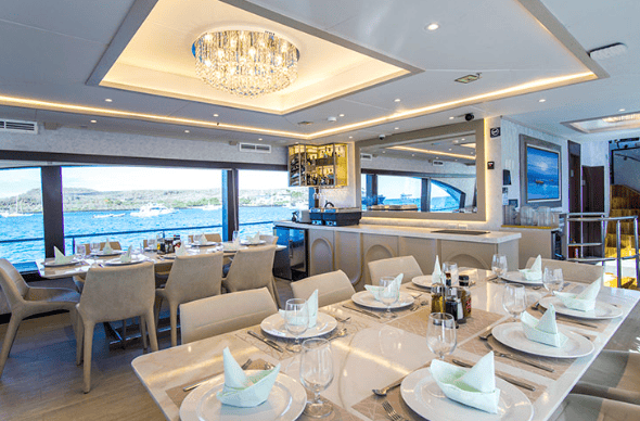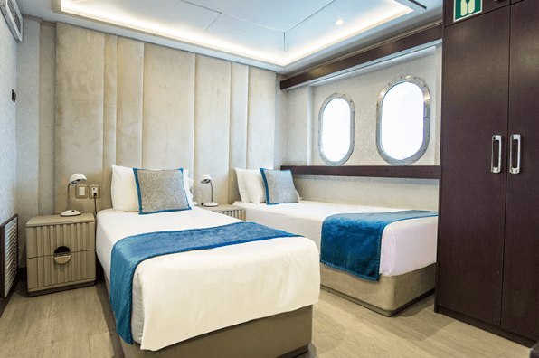 8 cabins distributed between 1 master suite and 7 staterooms with private bathroom and air conditioning.