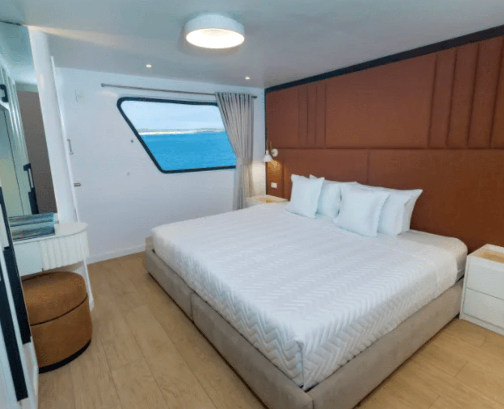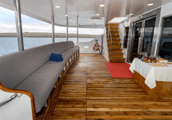 Queen Beatriz is a boutique Galapagos yacht built for travelers who notice the little things, the shine on black-lava shores, the quiet arc of a pelican, the way afternoon light brushes a cliff. Her personality is equal parts style and substance: ocean-view staterooms designed for real rest, generous open decks for front-row wildlife watching, and welcoming lounges where briefings feel like conversations, not lectures. The layout is intentionally compact, short steps from cabin to gear station to Zodiac boarding, so your energy stays focused on discovery.