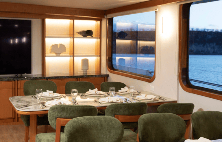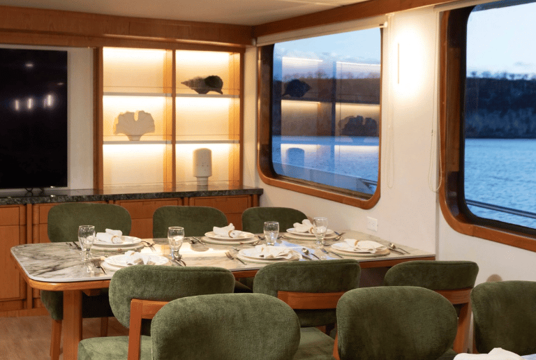 Between islands, the yacht’s stabilized hull keeps crossings smooth; ashore, small groups ensure unhurried wildlife encounters and room for photography. From sunrise briefings to golden-hour dinners, every day flows with purpose and ease.