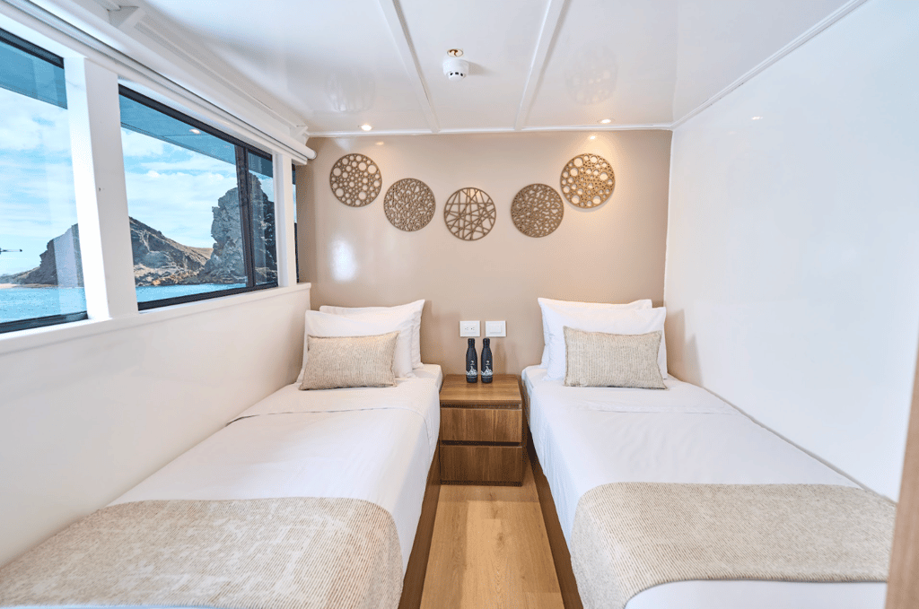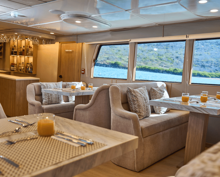 Monserrat welcomes a small group of travelers, creating an atmosphere that feels personal, calm, and never crowded. This intimate guest capacity means more time with your guide, easier landings, and a true small-ship Galapagos experience.
