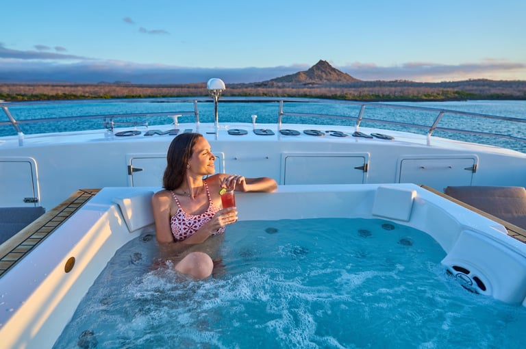 Life aboard Monserrat blends small-ship ease with the feel of a thoughtful basecamp: sunrise coffee and a crisp plan from your Galapagos naturalist, active windows for snorkeling, kayaking, or Zodiac cruising, and quiet interludes on open sun decks or in the ocean-view lounge. Evenings bring chef-inspired plates with Ecuadorian touches, relaxed conversation, and star-bright skies, an inviting home for Galapagos discovery.