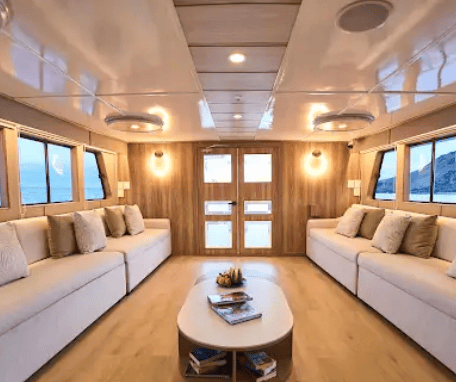 Its design prioritizes flow and comfort, from ocean-view cabins to wide exterior decks that invite relaxation between landings. You’re always just a few steps from the lounge, dining area, or Zodiac boarding point, making transitions effortless.