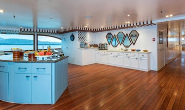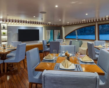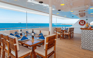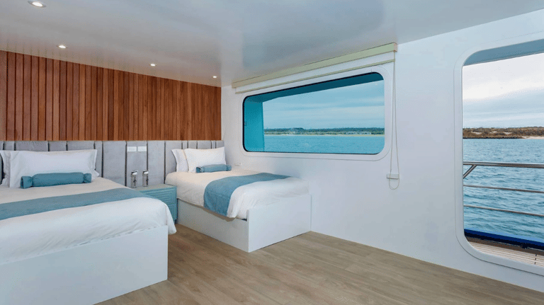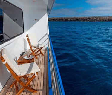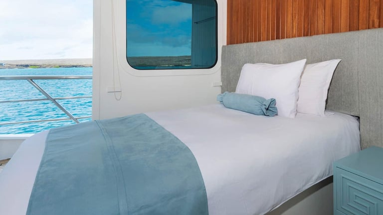 Built for the Galapagos from the hull up, Ocean Spray is a 16 guest luxury catamaran that feels open, airy, and reassuringly stable. The twin-hull design keeps the ride smooth while the experience stays small-group and personal, think unhurried Zodiac landings, quiet coves, and close, respectful encounters with blue-footed boobies, marine iguanas, and sea turtles. Sun-bright suites many with private balconies, frame the islands through panoramic windows, and the kitchen leans into Ecuadorian coastal cuisine with fresh ceviches and ocean-to-table plates. Add easy gear set-ups for snorkeling with sea lions, photo-friendly pacing, and you’ve found the calm, intimate sweet spot of a small-ship Galapagos luxury cruise.