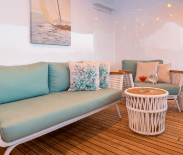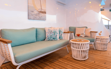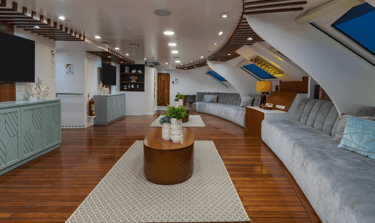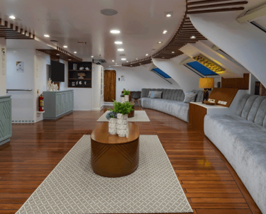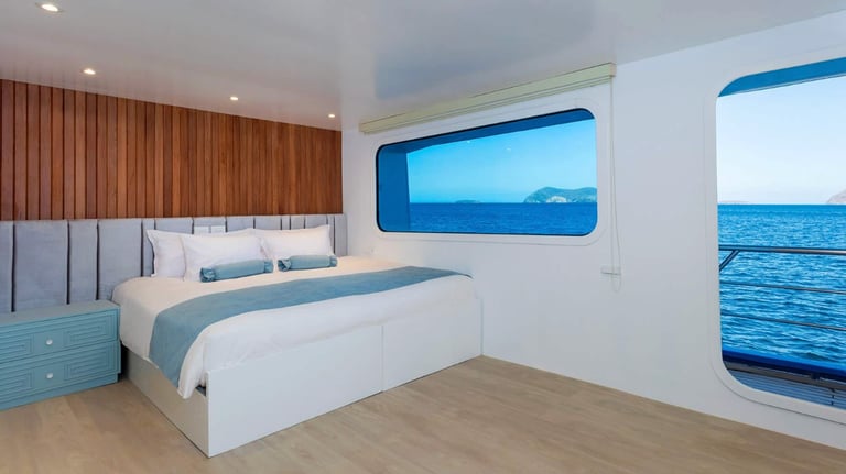 Ocean Spray’s extra-wide sun deck gives 360° views for dolphin wake-rides, manta fly-bys, and golden-hour boobies—one of the best panorama spots among 16-guest Galapagos luxury catamarans.