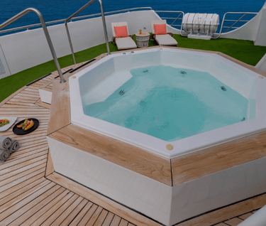 All accommodations on Ocean Spray are designed for comfort at sea experience with panoramic windows, smart storage, and private balconies in many categories. Social spaces flow from lounge to al-fresco dining and the sun deck/Jacuzzi, keeping wildlife front-and-center.
