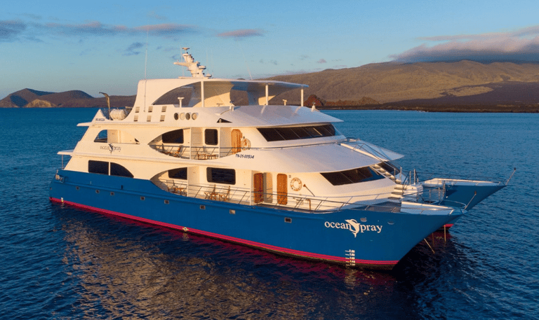 Meet Ocean Spray, a purpose-built Galapagos luxury catamaran for just 16 guests, twin-hull stability, airy suites , and small-group access to the archipelago’s best wildlife.