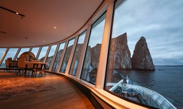 Days flow from sunrise wildlife encounters to gourmet dining and stargazing on deck, With purposeful design that protects the fragile ecosystem, and elevates your comfort, this is Galapagos cruising at its most exclusive and effortless.