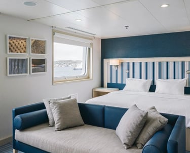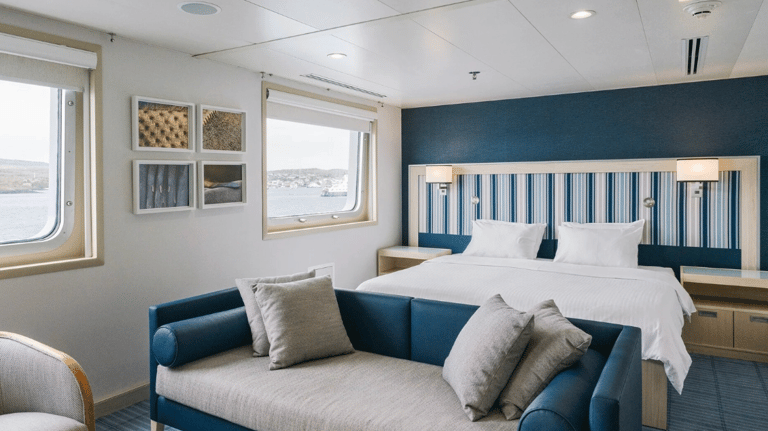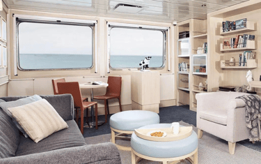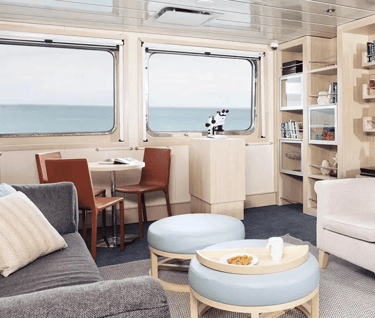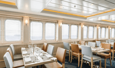 Cabins are smart and restful with panoramic windows, efficient storage, and inter-connecting options for families or friends traveling together. Public spaces flow naturally: a dedicated briefing lounge, a calm viewing deck, and welcoming dining areas that never feel crowded. Expedition logistics are streamlined so you spend less time queuing and more time out with wildlife.