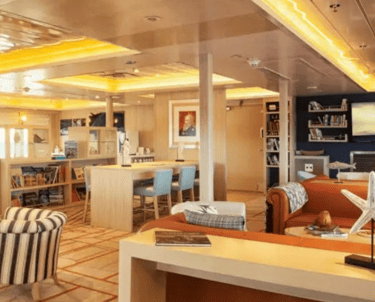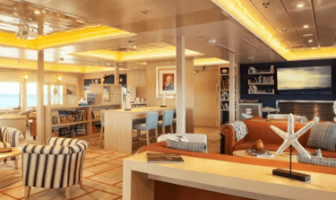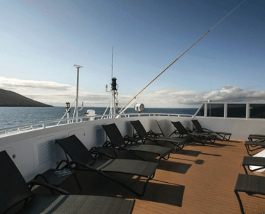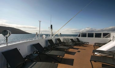 This modern Galapagos expedition ship gives you room to breathe: wide observation decks for golden-hour wildlife watching and stargazing, a calm briefing lounge for talks and Q&A, plus quiet nooks to read or review photos between outings.