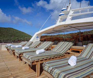 Mornings might bring sea-lion encounters and blue-footed boobies; afternoons drift into lava-shore snorkeling and quiet beaches. Evenings are for sunset on deck, chef-prepared meals, and stargazing beneath the equatorial sky.