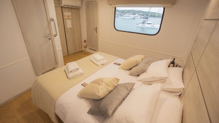 Twin-hull stability: Wider beam for smoother passages between islands and a calmer ride overall.