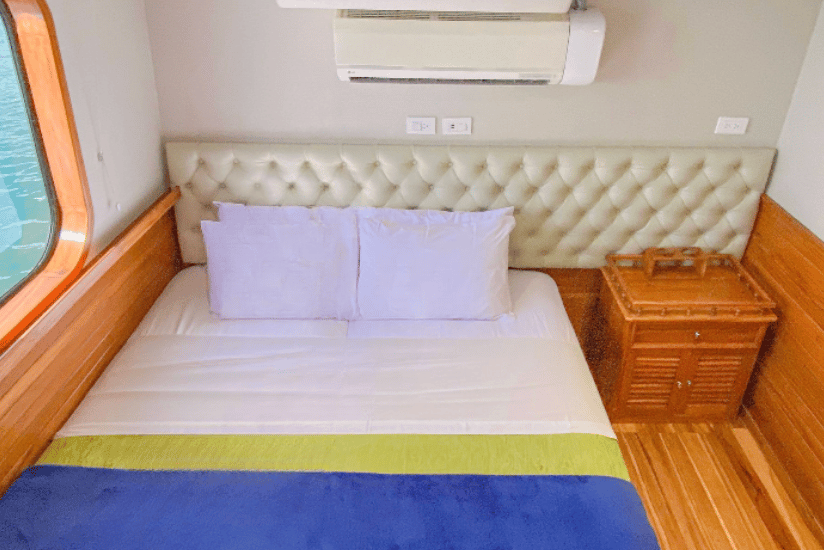 10 cabins distributed between the lower and upper deck with private bathrooms and air conditioning.