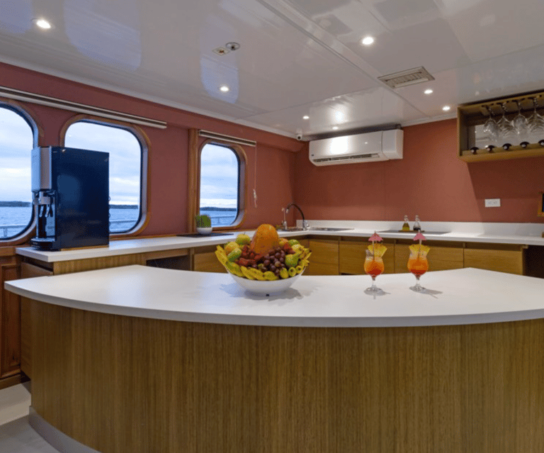Gather & Unwind: A comfortable lounge for briefings and nightcaps; shaded deck seating for reading and sea-breeze conversations; open foredecks for long, uninterrupted views.