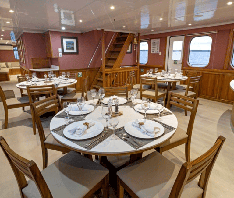 Life aboard Tip Top IV blends small-ship comfort with the feel of a floating field station: sunrise coffee and a crisp naturalist plan, snorkeling, kayaking, or Zodiac cruising through turquoise bays, then unhurried moments on open sun decks or in the ocean-view lounge. Evenings bring chef-inspired meals with Ecuadorian touches, easy conversation, and star-punctured skies, an inviting home base for Galapagos discovery.