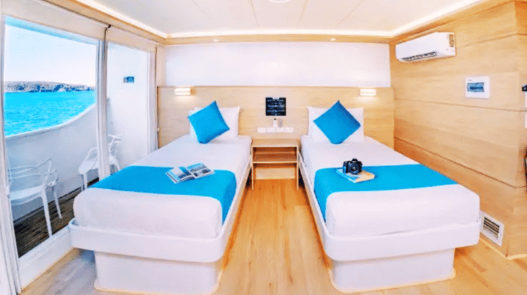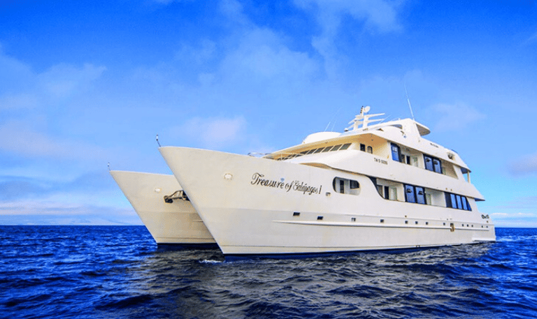 Discover the Galapagos aboard the 16-guest Treasure of Galapagos, a first-class catamaran featuring private balcony cabins, a jacuzzi deck, and personalized guiding by certified naturalists. Designed for comfort, intimacy, and adventure, it’s the perfect small-ship escape to explore the islands in style.