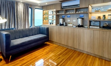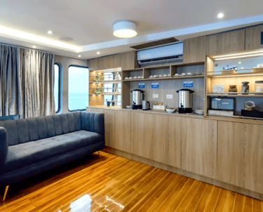 9 air-conditioned, ocean-view cabins with private bathrooms, including 4 spacious deluxe cabins with private balconies and 3 comfortable standard cabins.