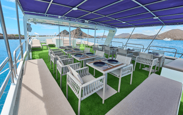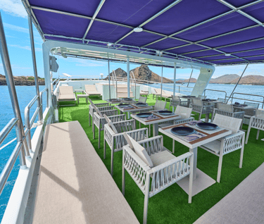 Life aboard Monserrat blends small-ship ease with the feel of a thoughtful basecamp: sunrise coffee and a crisp plan from your Galapagos naturalist, active windows for snorkeling, kayaking, or Zodiac cruising, and quiet interludes on open sun decks or in the ocean-view lounge. Evenings bring chef-inspired plates with Ecuadorian touches, relaxed conversation, and star-bright skies, an inviting home for Galapagos discovery.